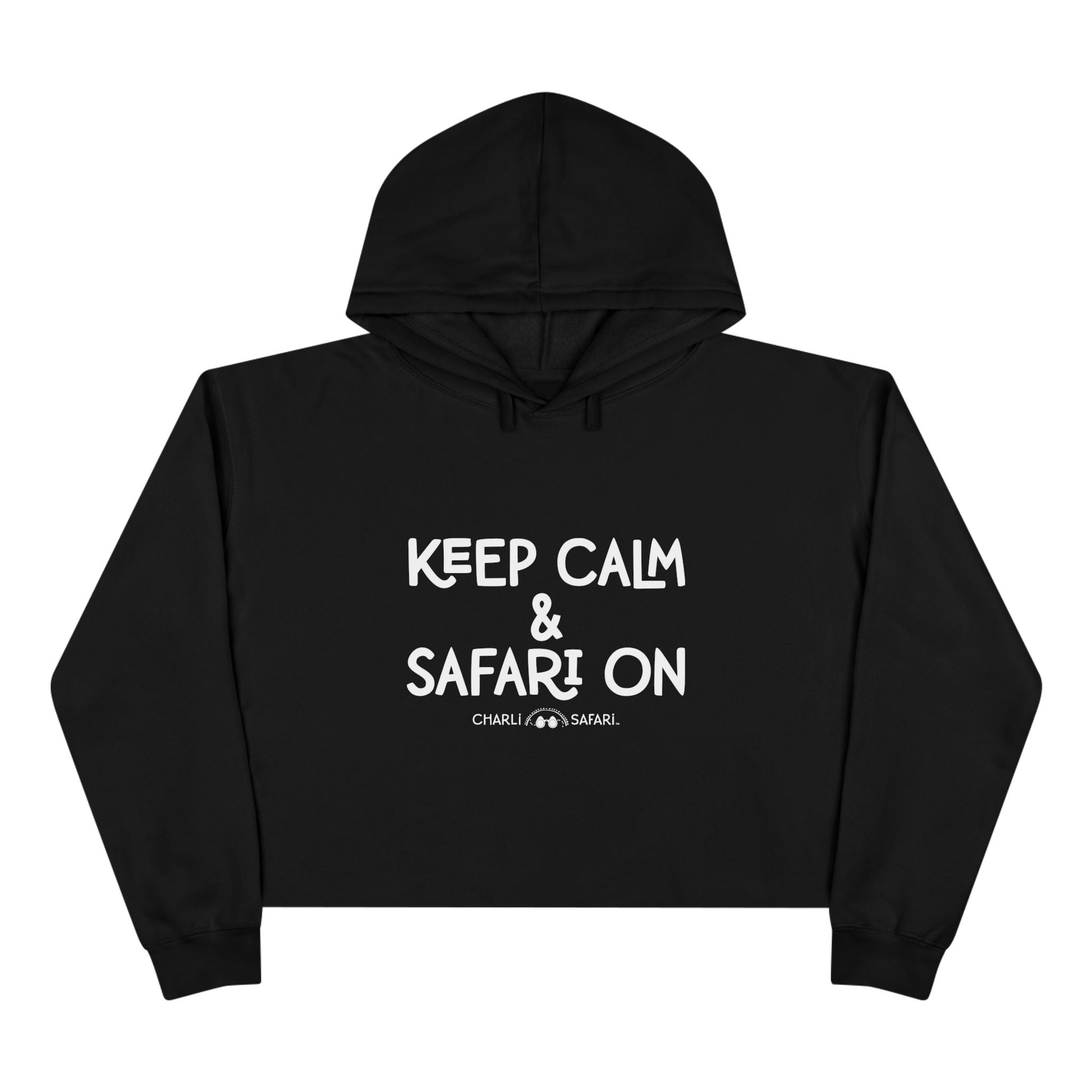 Adventure Vibe Crop Hoodie, Keep Calm & Safari On, Casual Wear, Travel Gear, Gift for Explorers, Cozy Layering Piece
