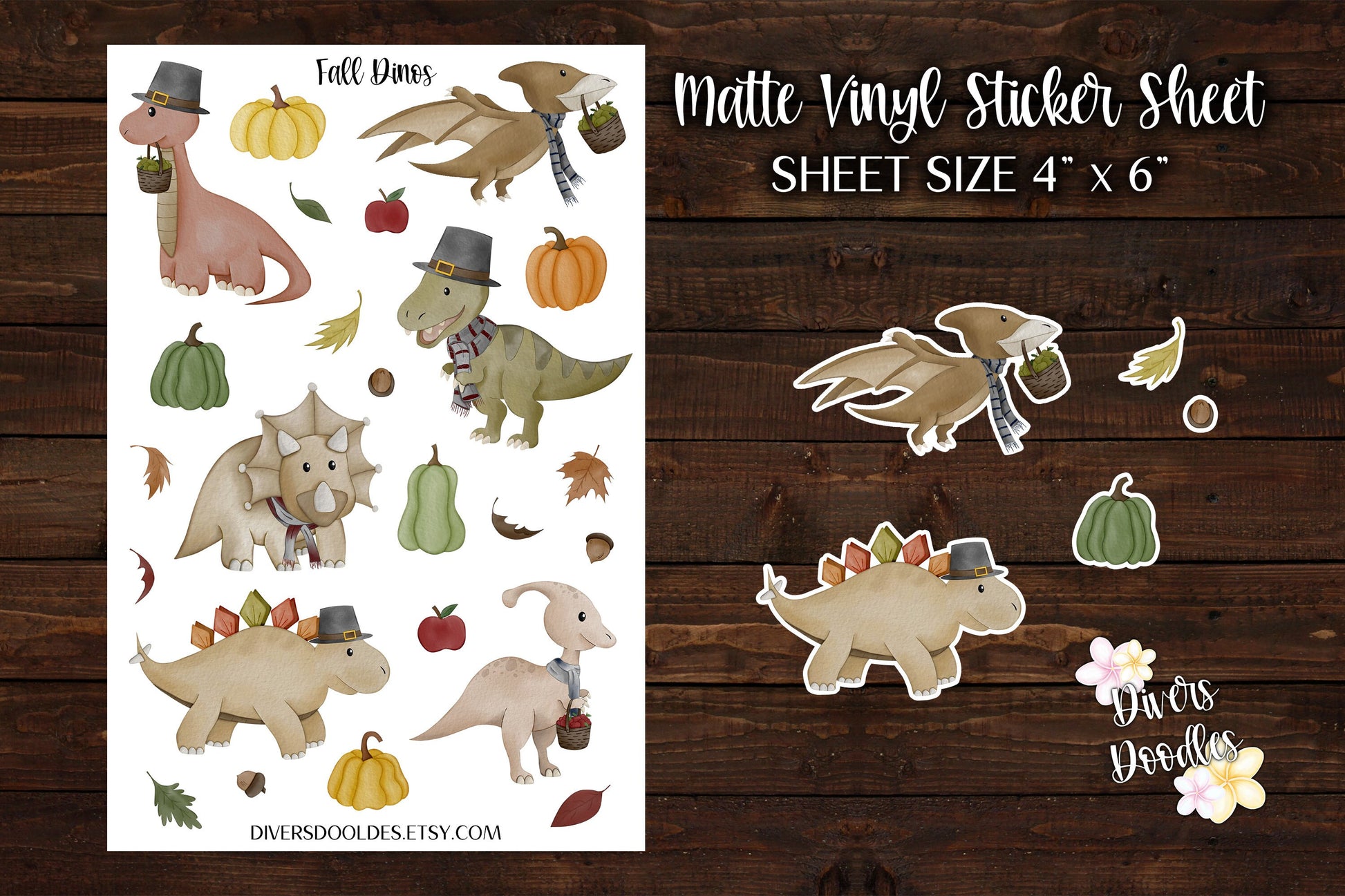 Dinosaur Sticker Sheet, Matte Stickers for Planners, Autumn Stickers for Scrapbooking, Fall Stickers for Kids, Vinyl Stickers for Laptop