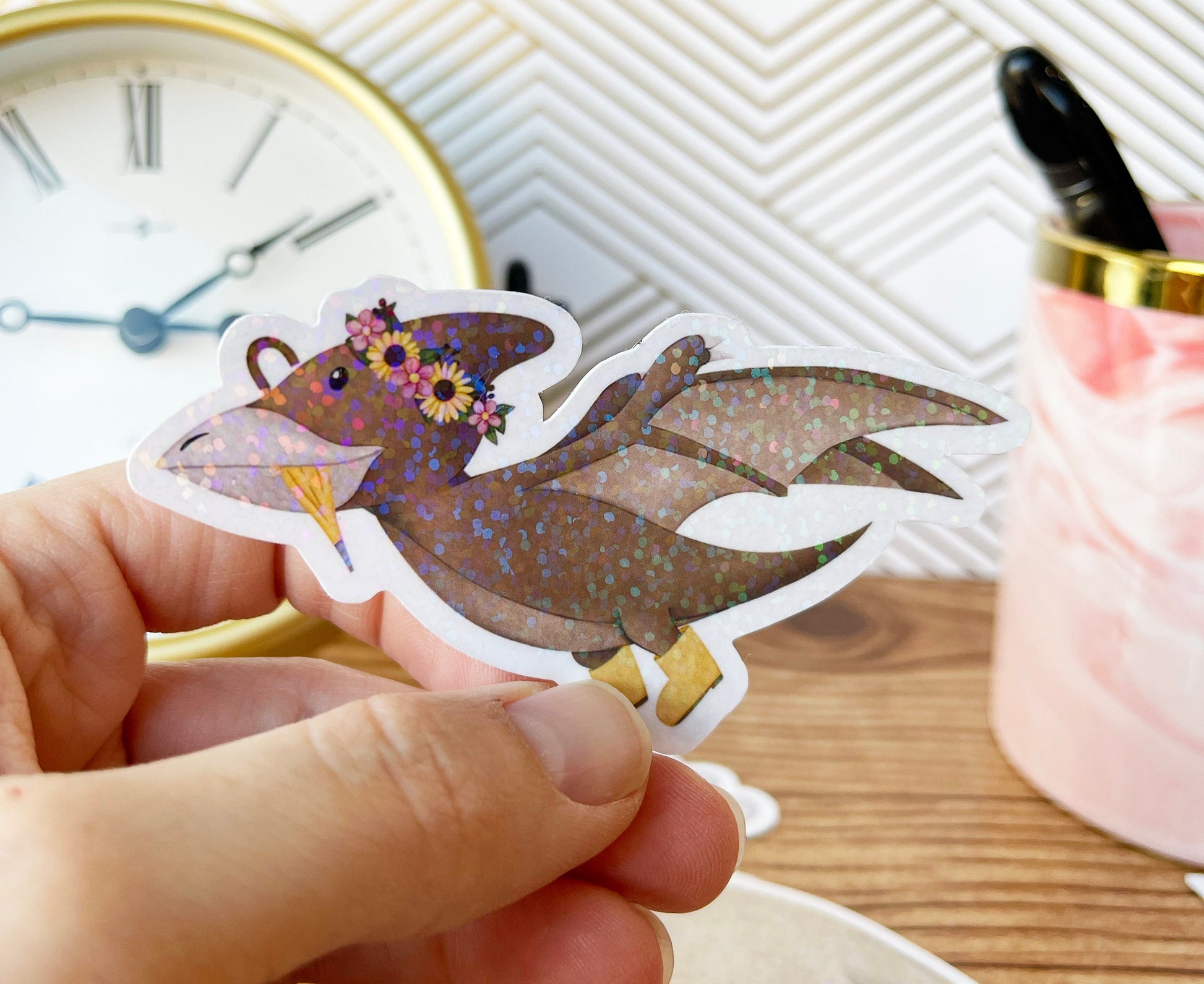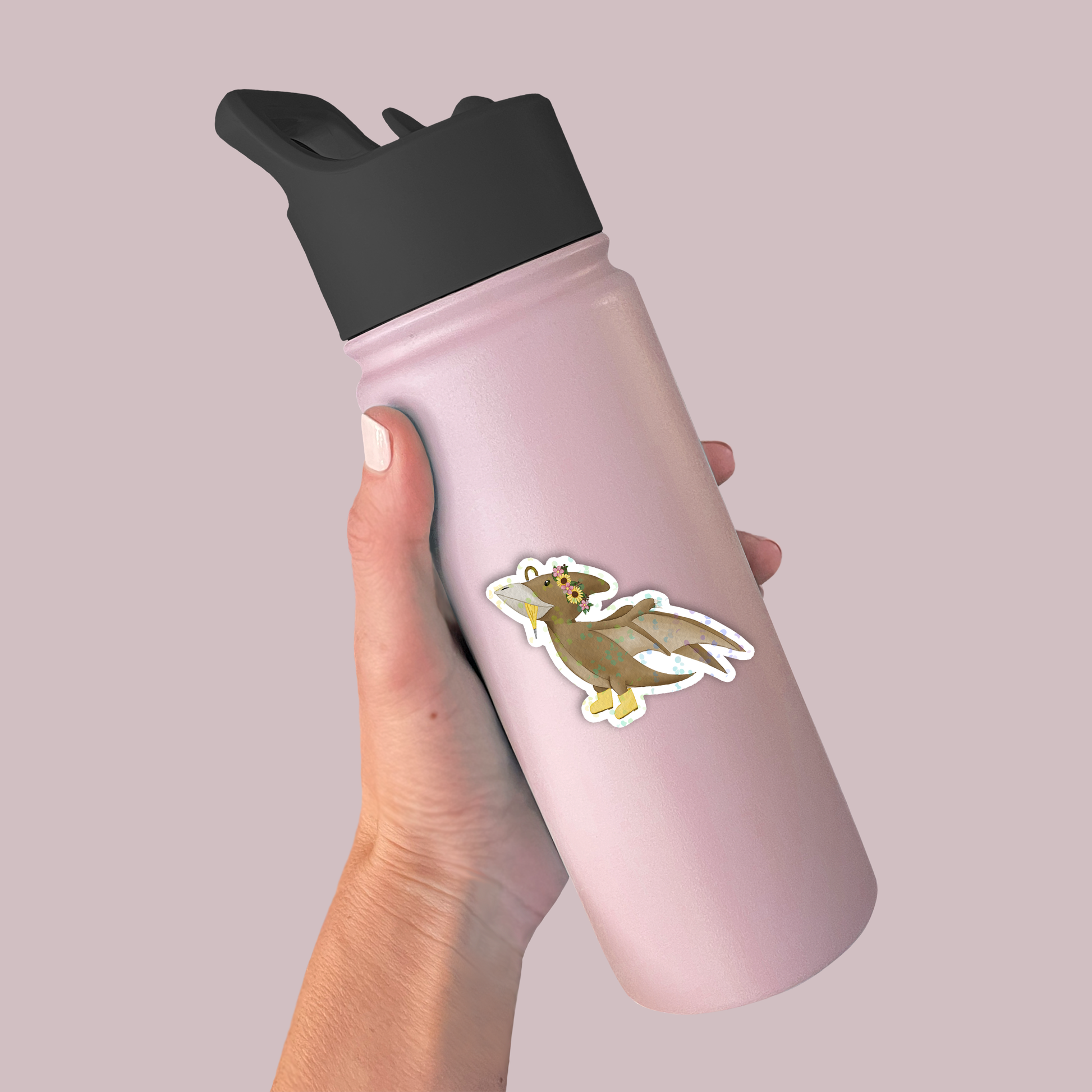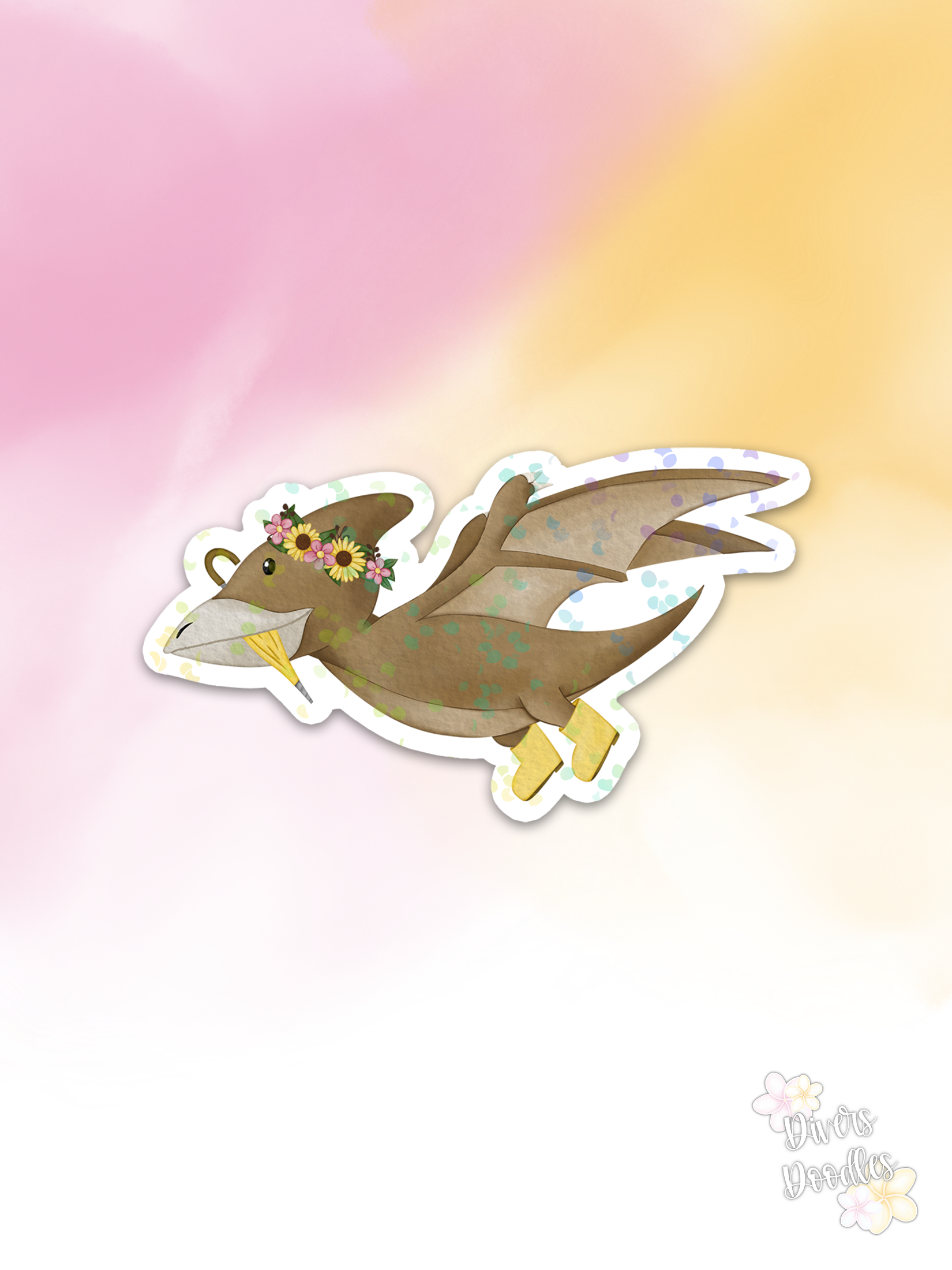 Hand drawn Pterodactyl dinosaur with a flower crown, umbrella and boots. Perfect gifts or party favors for your dinosaur loving adults and kids. Fill those easter baskets for your teens and kids with some unique holographic stickers!