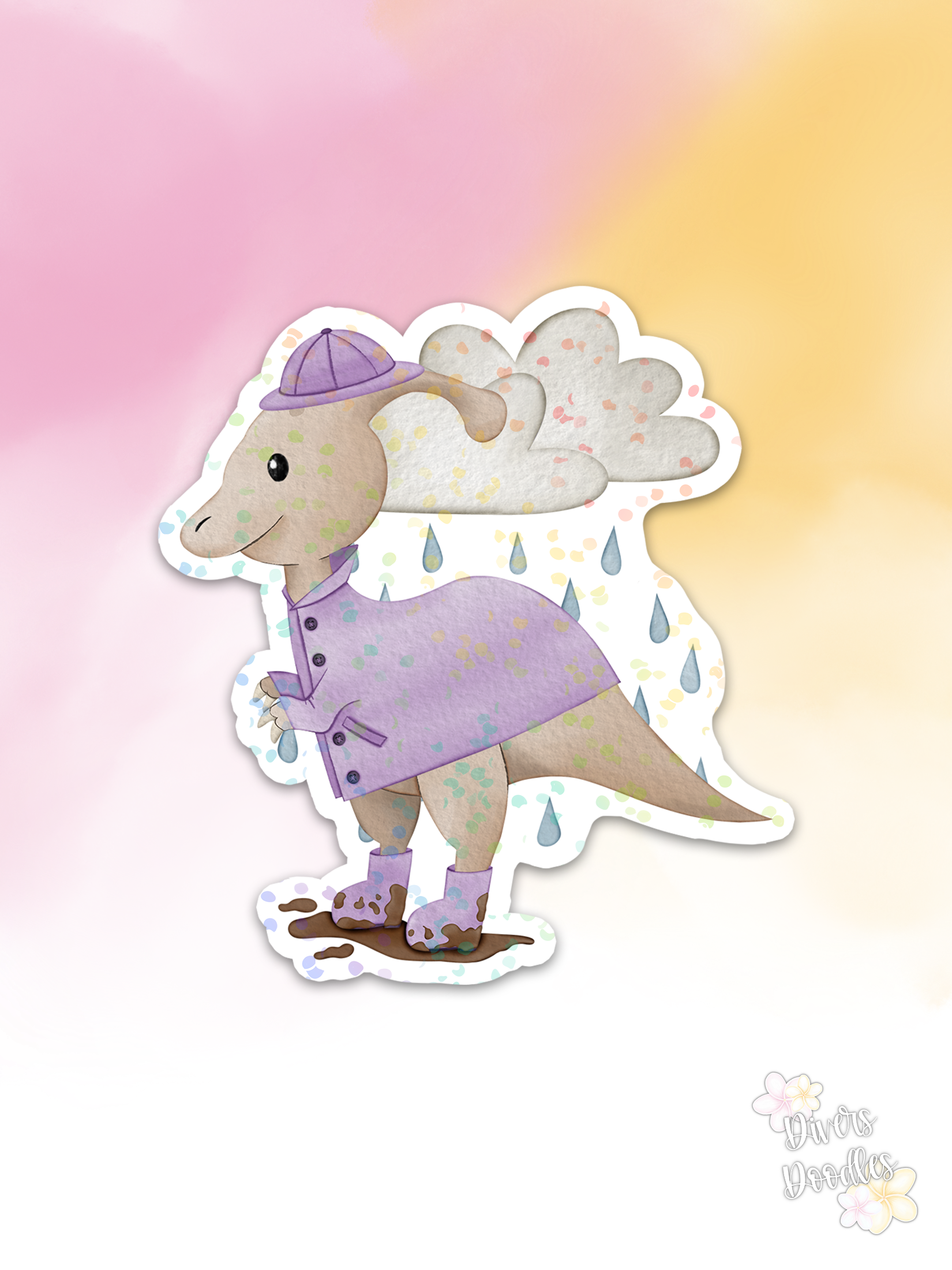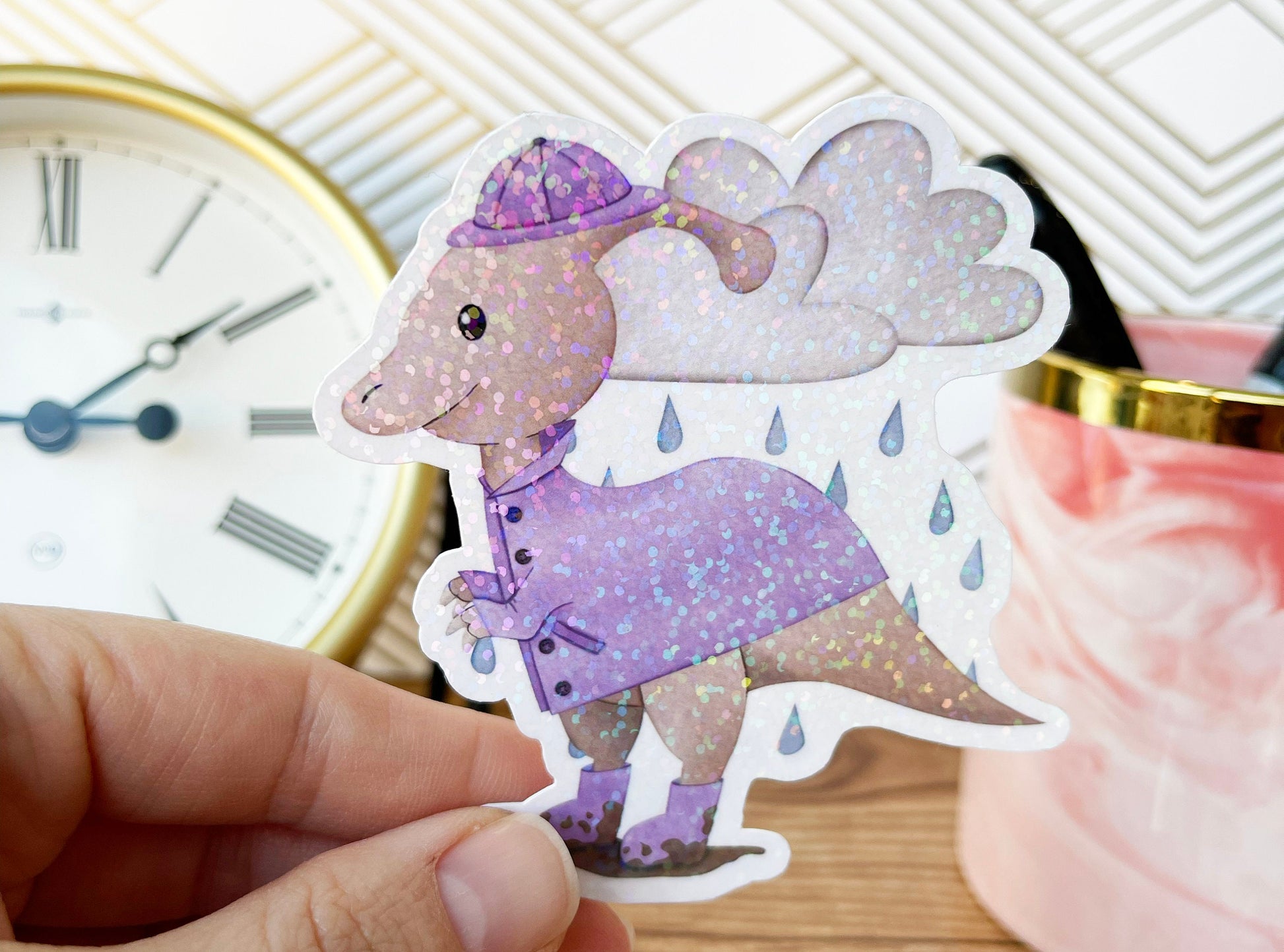 Hand drawn Parasaurolophus dinosaur with matching rain hat, coat and boot combo. Perfect gifts or party favors for your dinosaur loving adults and kids. Fill those easter baskets for your teens and kids with some unique holographic stickers!