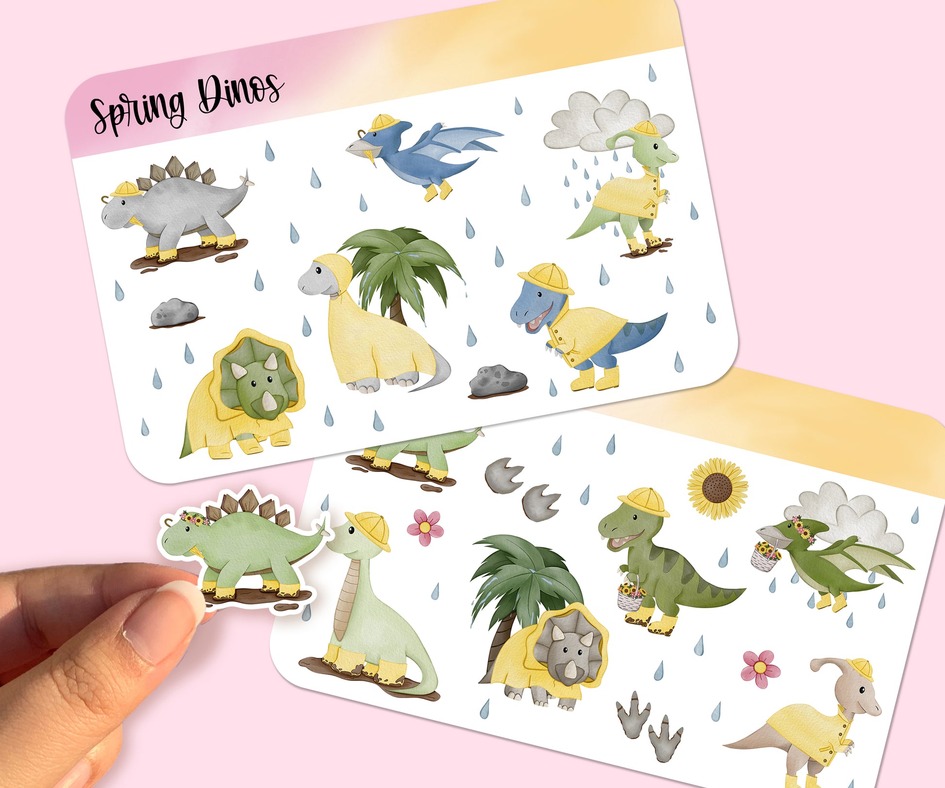 Size of individual stickers varies, dinosaurs range between 1.5" and 2".