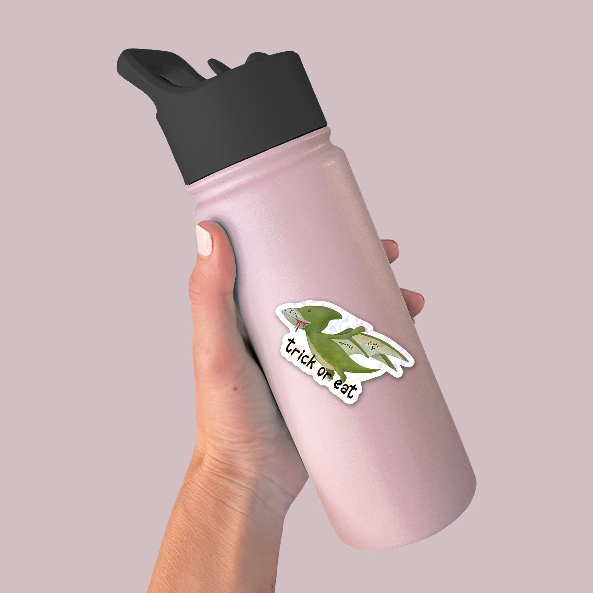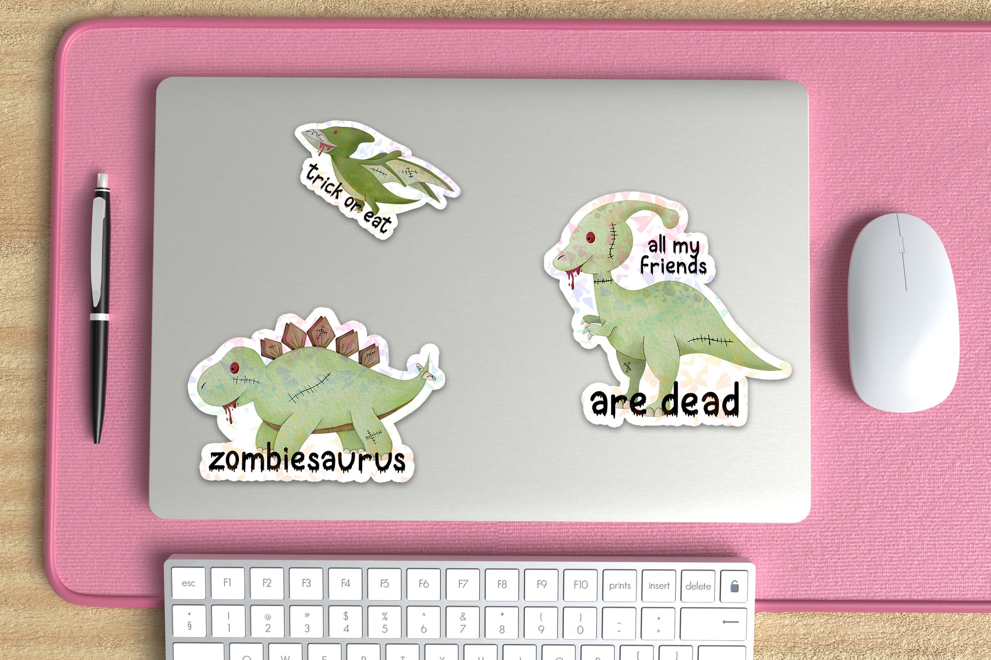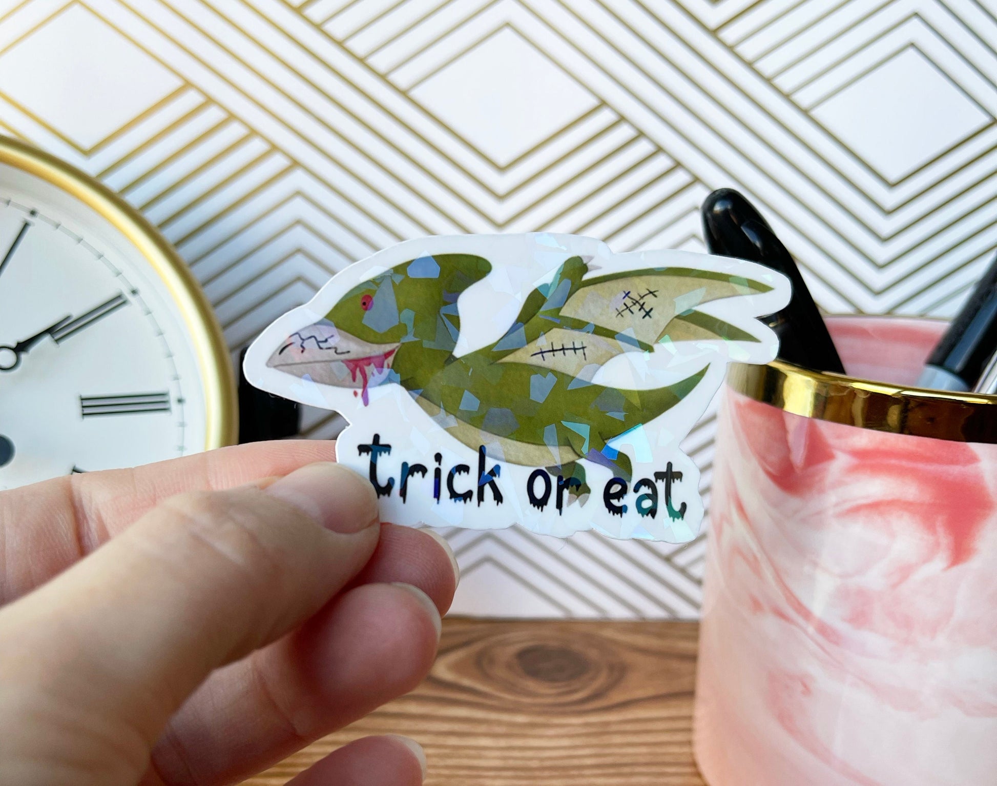 Trick or Treat Sticker for Cups, Zombie Sticker for Water Bottle, Funny Dinosaur Sticker for Kids, Dinosaur Gifts for Adults, Holographic